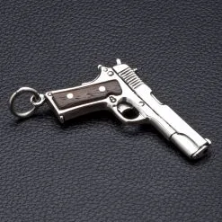 Bikerringshop Silver Wood Pistol Gun Pendants