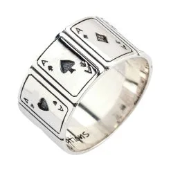 Bikerringshop 925 Sterling Silver Ace Cards Band Ring