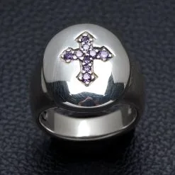 Bikerringshop Amethyst Silver Cross Christian Ring