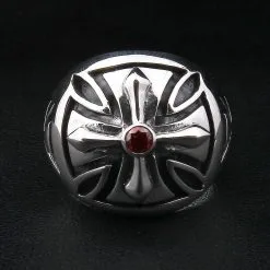 Bikerringshop Sterling Silver Garnet Cross Biker Rings