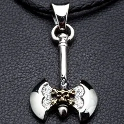 Bikerringshop Sterling Silver Skull Axe Pendant Necklaces
