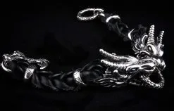 Bikerringshop Dragon Genuine Leather Mens Chain Bracelet