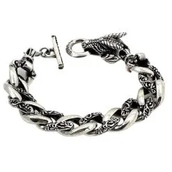 Bikerringshop 925 Sterling Silver Dragon ID Biker Men’s Bracelet