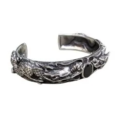 Bikerringshop Black Onxy Sterling Silver Dragon Men’s Cuff Bracelet