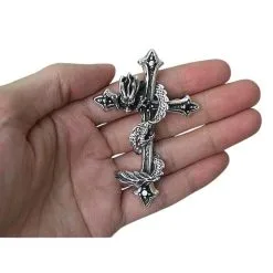 Bikerringshop Sterling Silver Dragon Cross Pendant