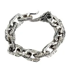 Bikerringshop Sterling Silver Dragon Link Mens Bracelet