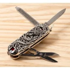 Bikerringshop Sterling Silver Dragon Swiss Army Knife Pendant