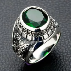 Bikerringshop Sterling Silver Emerald Japanese Tiger Dragon Mens Ring