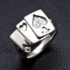 Bikerringshop 925 Sterling Silver Ace Cards Band Ring