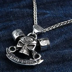 Bikerringshop Sterling Silver Chopper Skull Biker Pendant