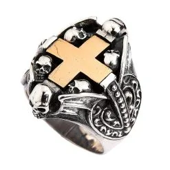 Bikerringshop Sterling Silver Yellow Gold Cross Heart Gothic Ring
