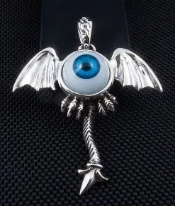 Bikerringshop Sterling Silver Blue Eyeball Gothic Wings Pendant