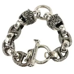 Bikerringshop Silver Lion Head Mens Chain Bracelets
