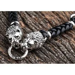 Bikerringshop Lion Silver Mens Leather Bracelet