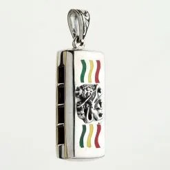 Bikerringshop Silver Rasta Lion Harmonica Pendant Necklace