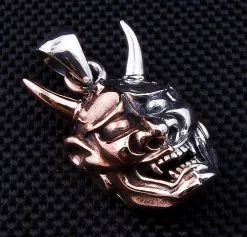 Bikerringshop Sterling Silver Copper Japanese Samurai Mask Pendant