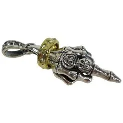 Bikerringshop Sterling Silver Skeleton Hand Finger Rocker Pendant