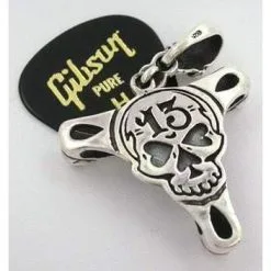 Bikerringshop Sterling Silver Skull Guitar Pick Holder Mens Pendant