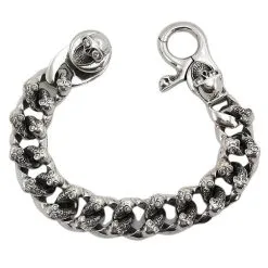 Bikerringshop Sterling Silver Multi Skull Biker Bracelet