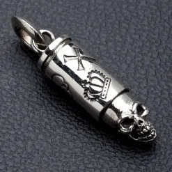 Bikerringshop Sterling Silver Skull Bullet Pendant