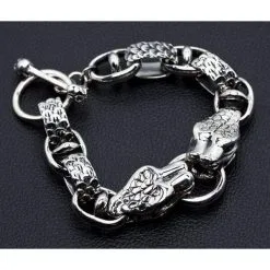 Bikerringshop Sterling Silver Snake Head Bracelet