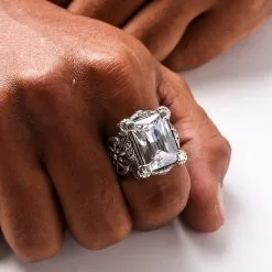 Bikerringshop Sterling Silver Diamond Topaz Gothic Ring