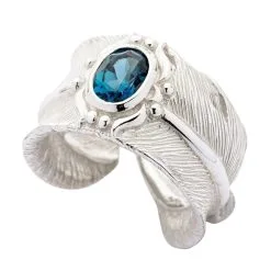 Bikerringshop Blue Topaz Sterling Silver Dragon Claw Mens Ring