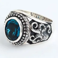 Bikerringshop Sterling Silver Octopus London Blue Topaz Mens Ring
