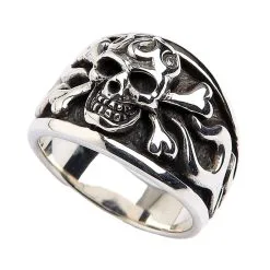 Bikerringshop Sterling Silver Flame Skull Crossbones Ring