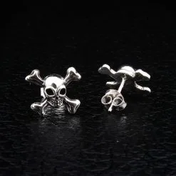 Bikerringshop Sterling Silver Crossbones Skull Studs Earrings