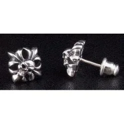 Bikerringshop Sterling Silver Skull Bone Studs Earrings