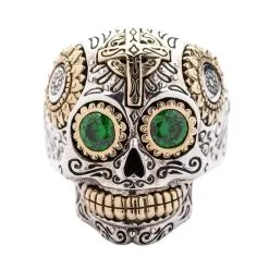 Bikerringshop Green Amber Mexican Skull Gothic Mens Ring