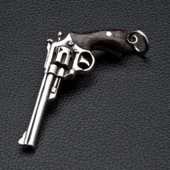 Bikerringshop Silver Wood Pistol Gun Pendants