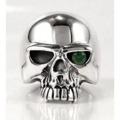 Bikerringshop Sterling Silver Emerald Green Eye Skull Mens Ring