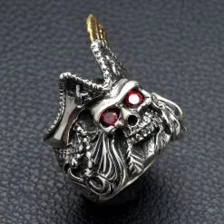 Bikerringshop Sterling Silver Red Eye Skull Pirate Ring