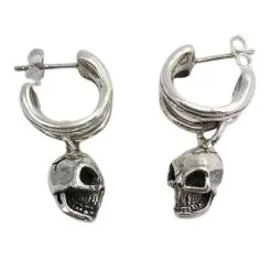 Bikerringshop Sterling Silver Dangle Punk Skull Earring