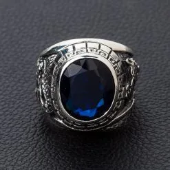 Bikerringshop Sterling Silver Big Sapphire Mens Rings