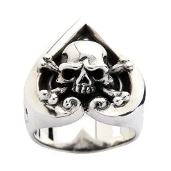 Bikerringshop 925 Sterling Silver Crossbones Heart Ace Skull Ring