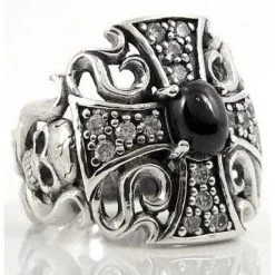 Bikerringshop Black Star Sterling Silver Skull Diamond Cross Rings