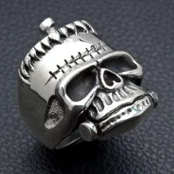 Bikerringshop 925 Sterling Silver Frankenstein Mens Skull Ring