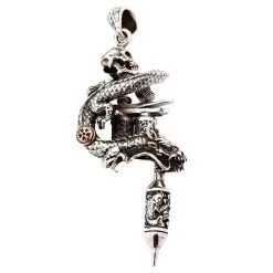 Bikerringshop Dragon Skull Tattoo Machine Gun Pendant