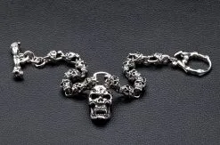 Bikerringshop Flame Skull Sterling Silver Bracelet