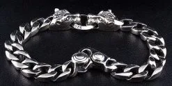 Bikerringshop Sterling Silver Tribal Wolf Mens Bracelet