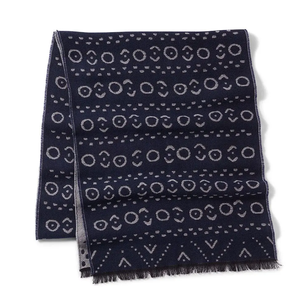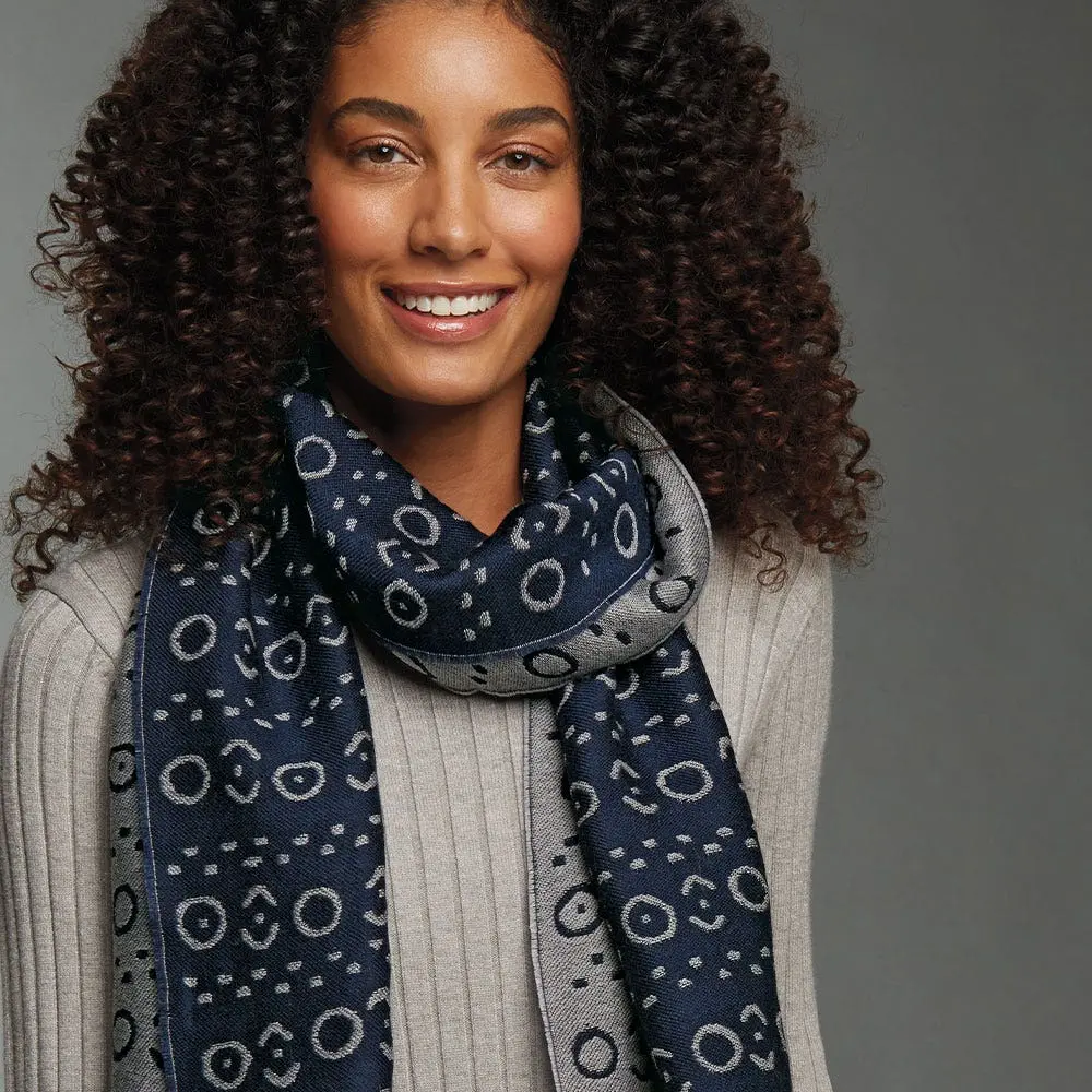 Our unisex scarf recalls a cotton bogolanfini, or mud cloth, in The Met collection. Created in the West African nation of Mali during the 19th–20th century, it’s typical of the traditional textiles crafted by Bamana weavers and dyers. In a collaborative process, men weave the cloth and women decorate it using plant extracts and mud. The resulting geometric patterns in shades of black and brown are unmistakable.