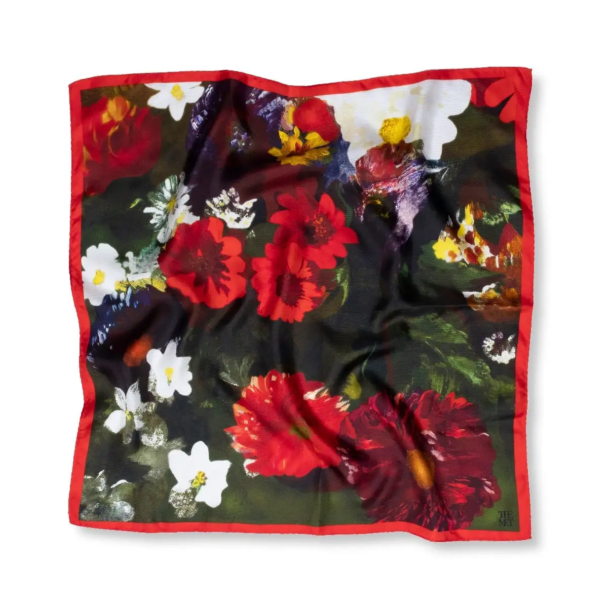 In September 1848, Eugène Delacroix (French, 1798–1863) retreated to his country house to escape the turmoil of post-revolutionary Paris. There he created a group of flower paintings from life, meant for the Salon of 1849. Because of the possibility of frost, he worked quickly and produced five canvases. Shown in detail on our scarf, Basket of Flowers in The Met was one of only two paintings he deemed suitable for the Salon.