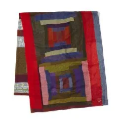 Featuring lush, radiant colors, the Museum’s scarf is based on Louis Comfort Tiffany’s (American, 1848–1933) Magnolias and Irises Favrile glass window depicting a picturesque landscape. The window features an embankment of irises beneath flowering magnolia trees. Magnificent purple hills with a central meandering stream, emblematic of the River of Life theme, are set in the background.